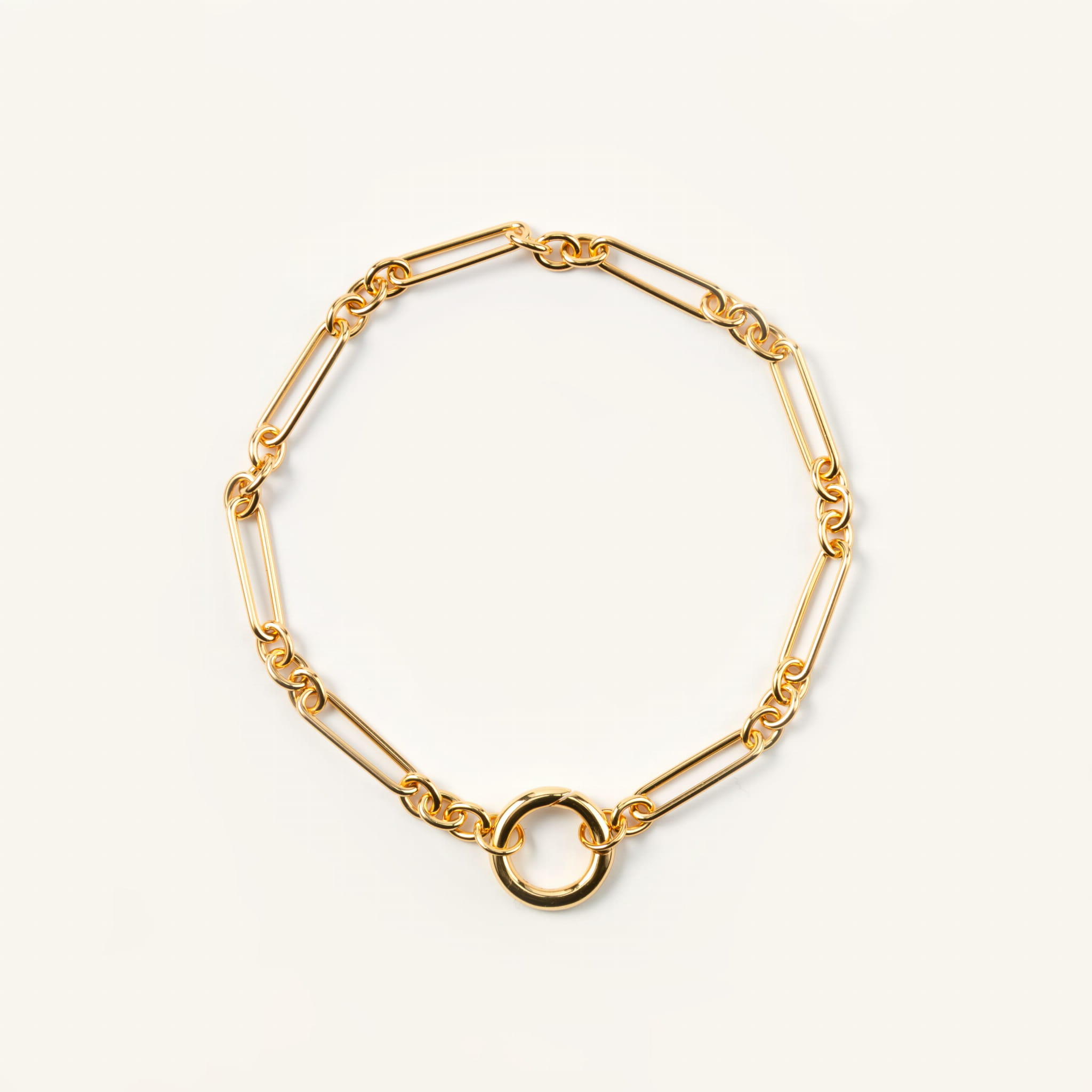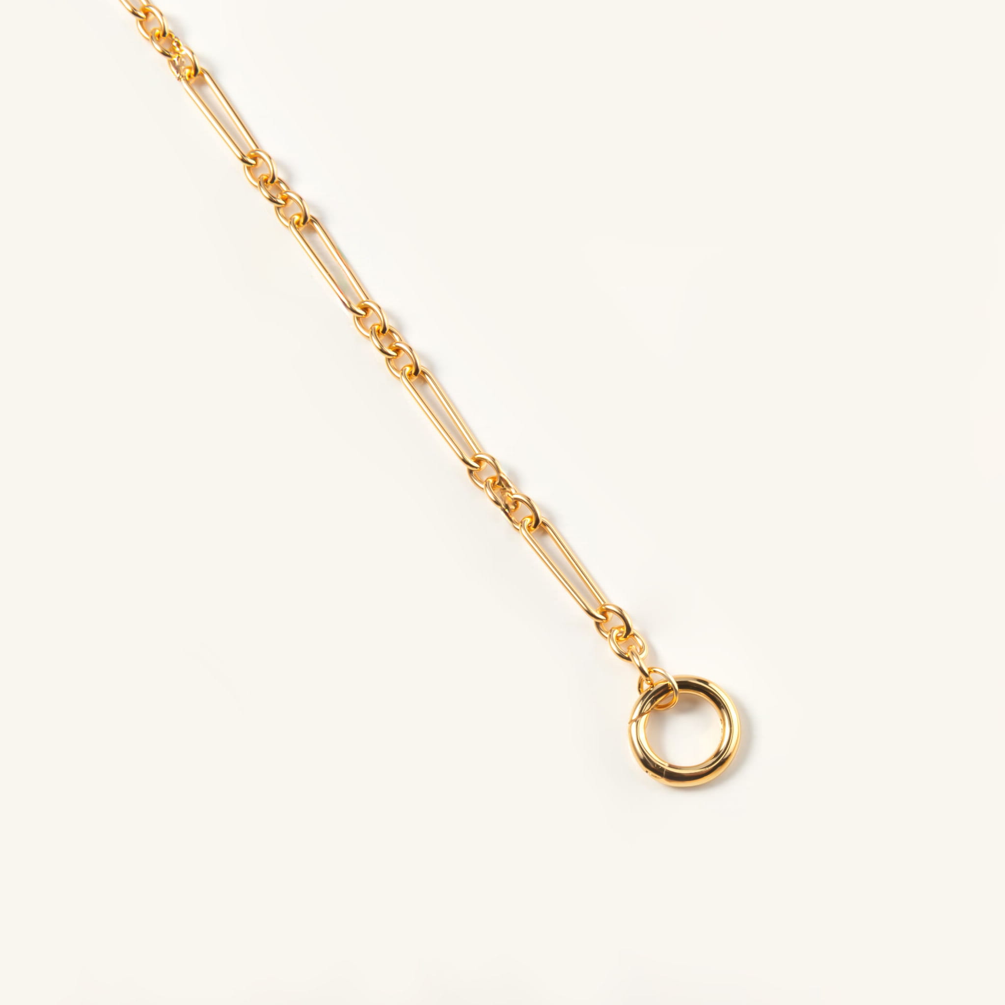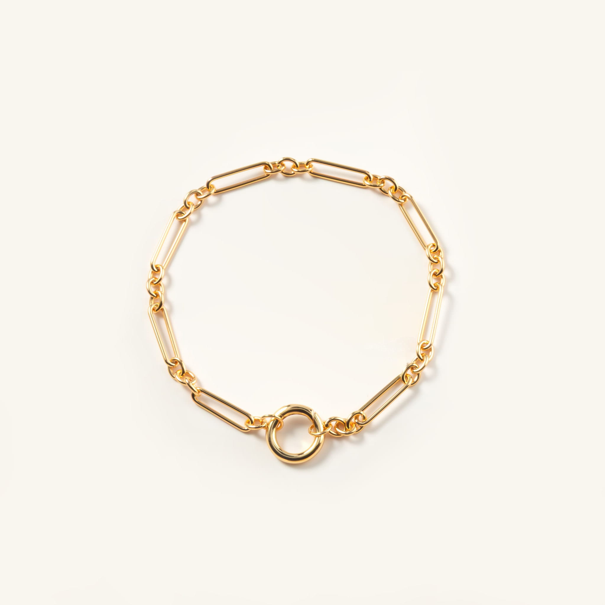 Ta bransoletka to esencja prostoty, która daje nieskończone możliwości. Złoty łańcuszek o wydłużonych, geometrycznych ogniwach wygląda lekko i nowocześnie a jednocześnie przyciąga uwagę swoją subtelną elegancją. Zakończona gładkim kółkiem, które zaprasza do zabawy formą i dodatkami. Możesz spersonalizować swoją biżuterię, dobrać do bransoletki zawieszkę z naszej kolekcji. Perłę, kamień naturalny, zawieszkę jedną lub kilka i za każdym razem stworzyć zupełnie inny look. Delikatnie, klasycznie lub odważnie.