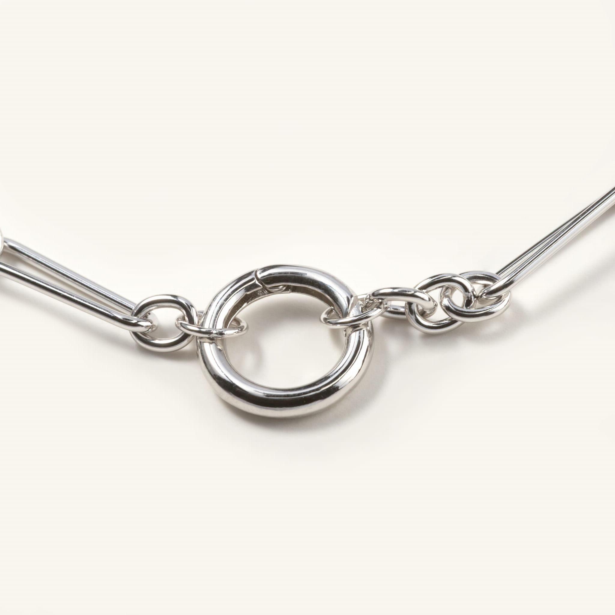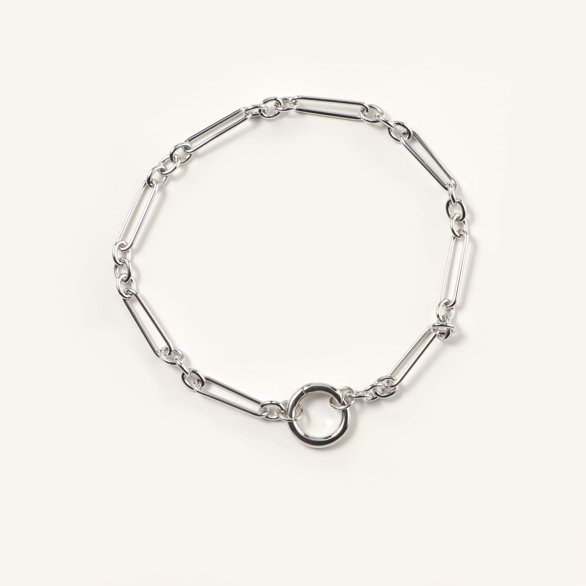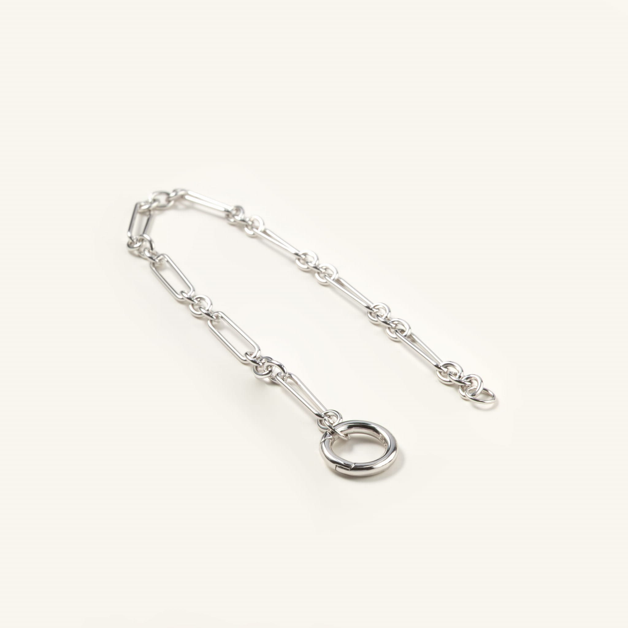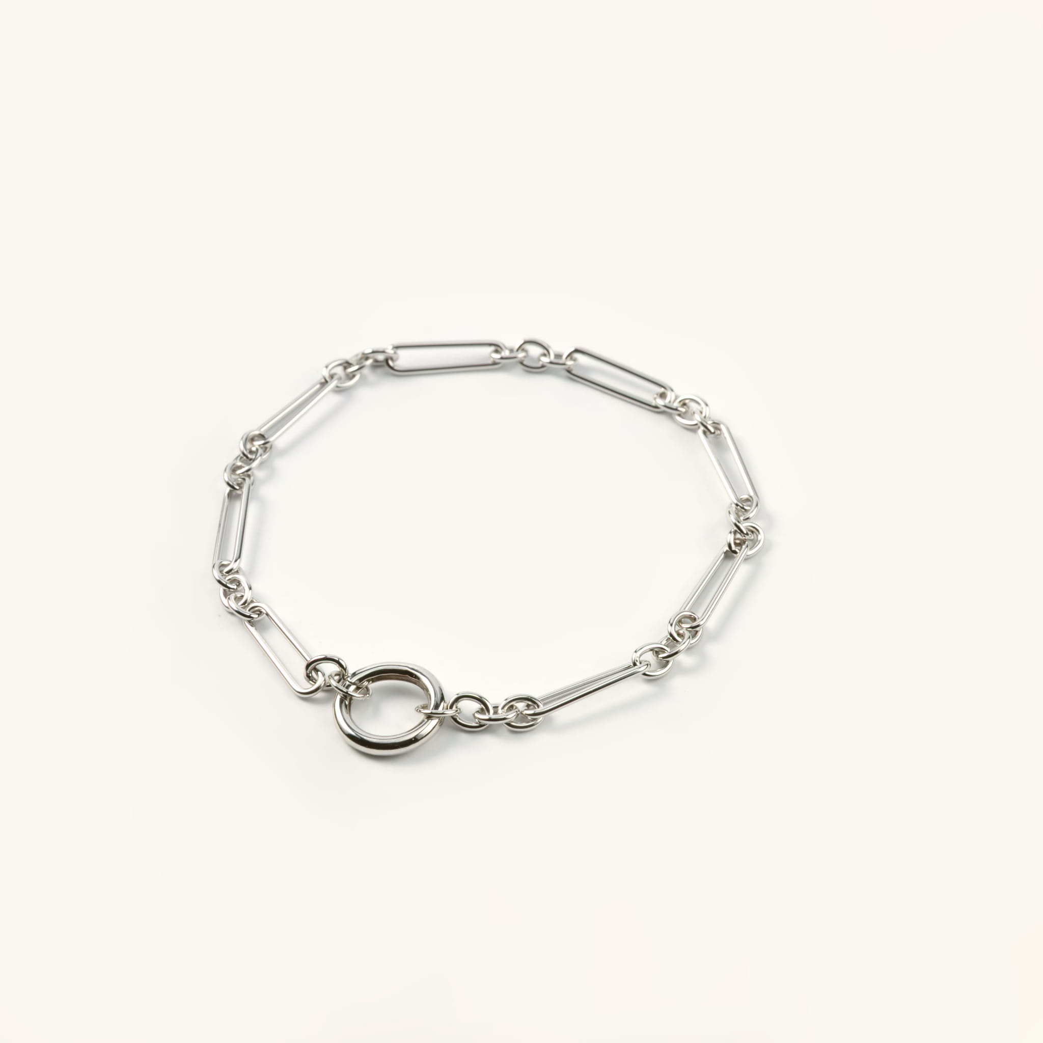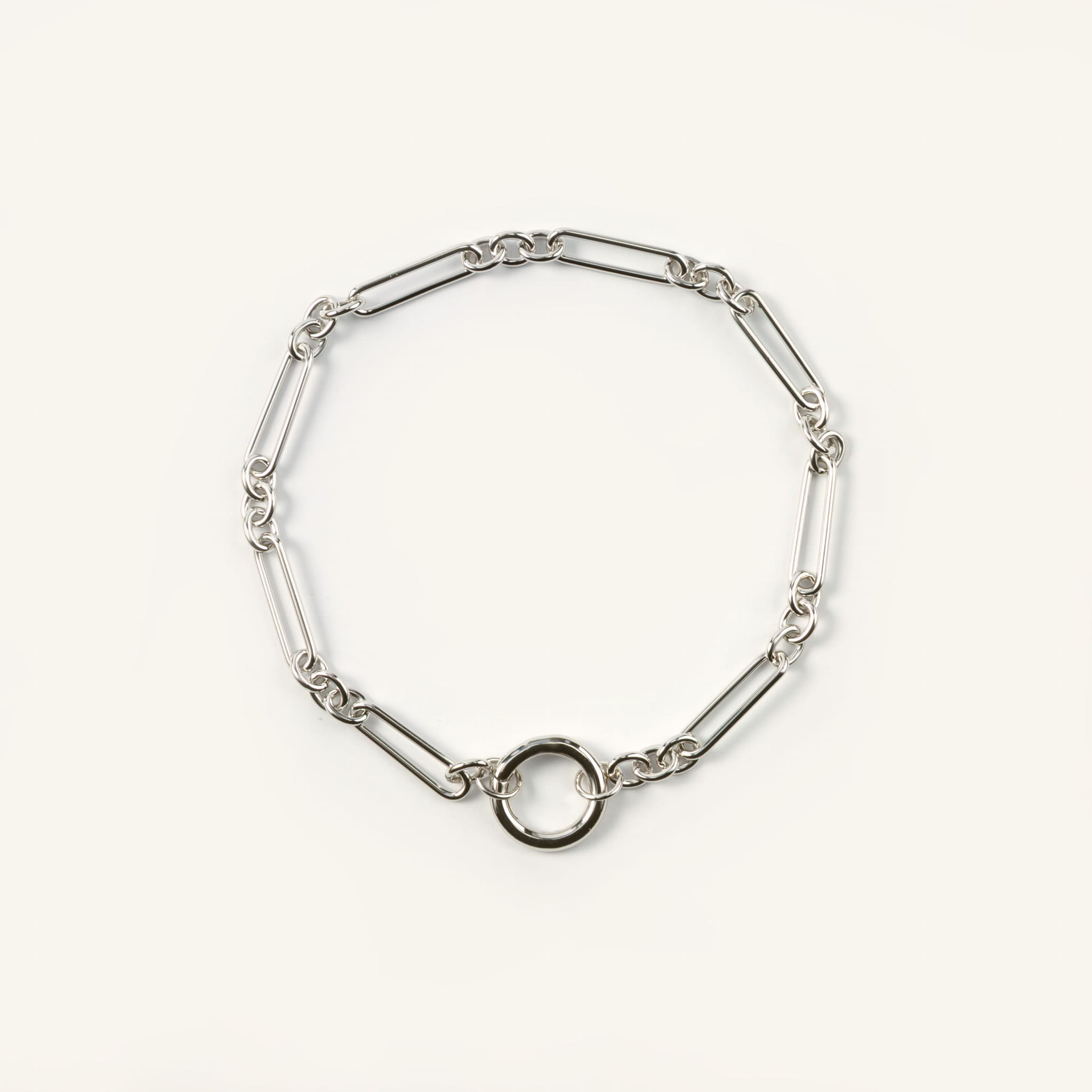 Bransoletka srebrna z podłużnych dużych ogniw i zapięciem w formie koła na zawieszki