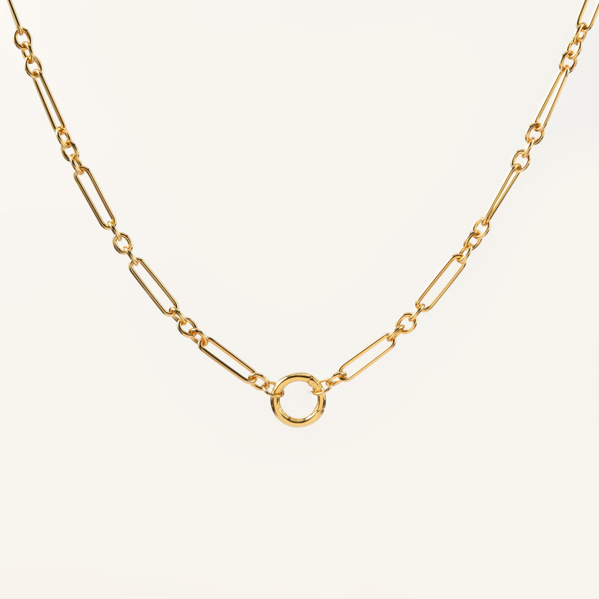 Nowoczesny naszyjnik pozłacany o ogniwowym splocie z kółkiem ozdobnym na zawieszki
