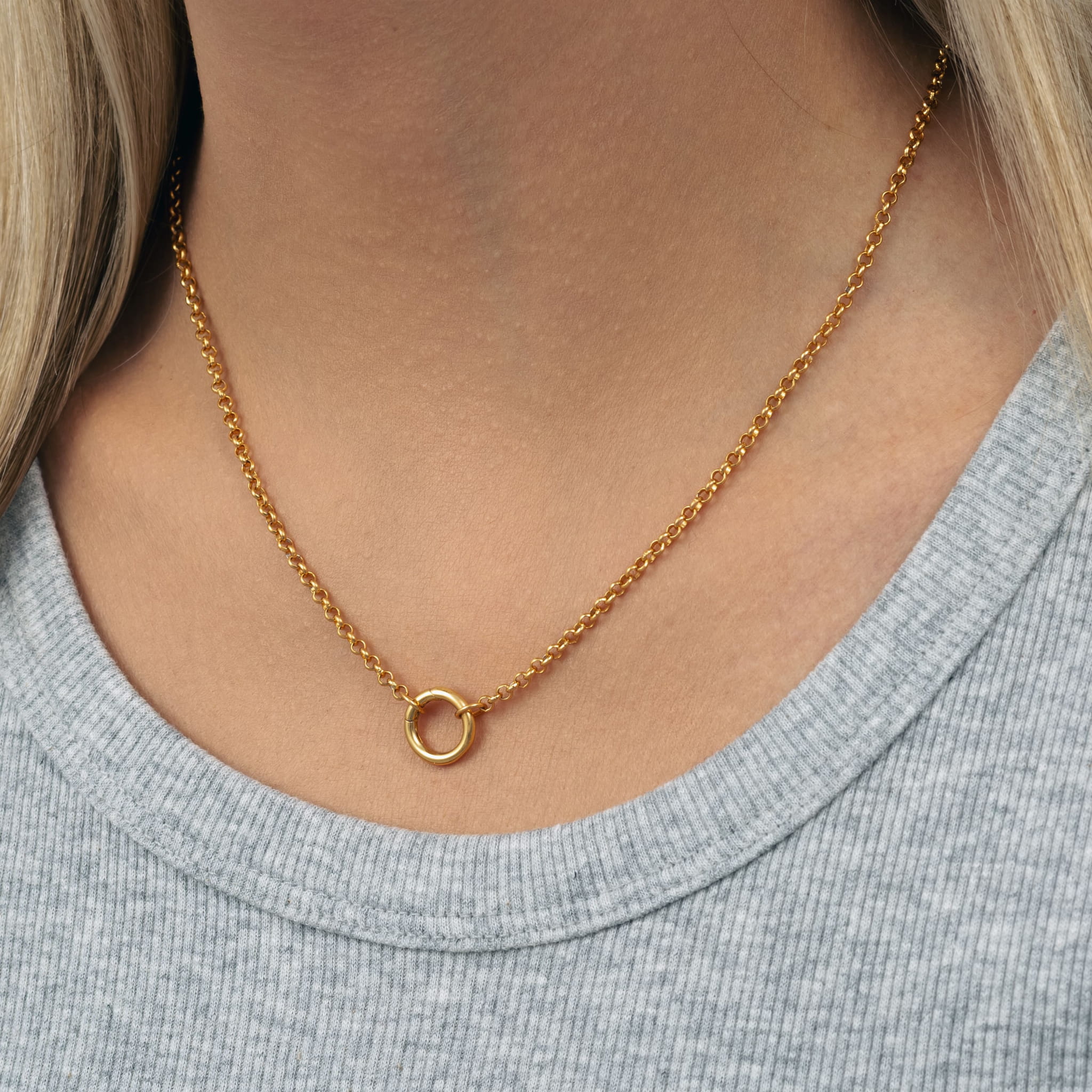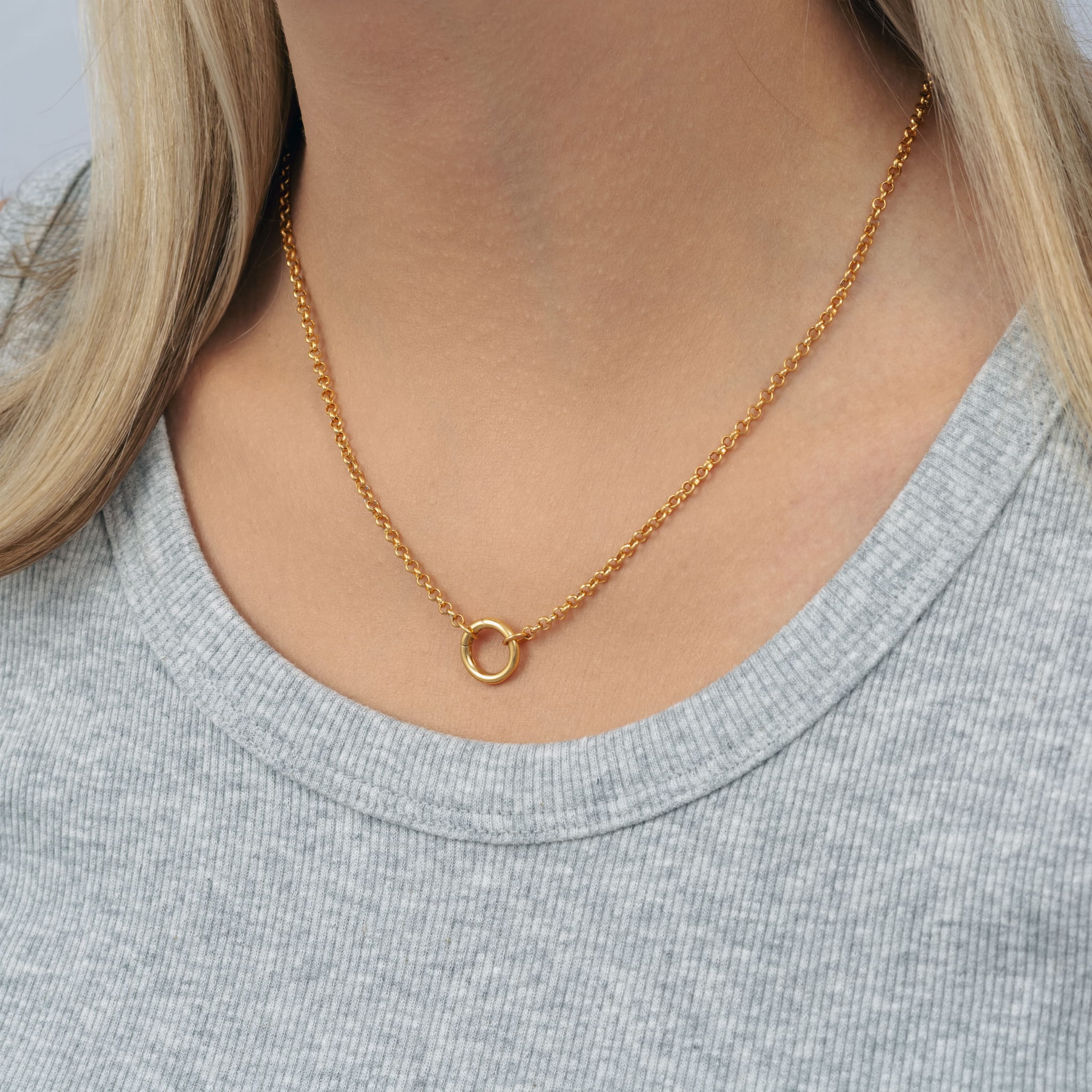 Mocny łańcuszek zakończony okręgiem, który umożliwia tworzenie spersonalizowanej biżuterii. Na ozdobnym kółku możesz dopiąć zawieszkę, charmsa, medalion i eksperymentować z różnymi stylami od minimalistycznego po wyrazisty look. Jego nowoczesny charakter łączy siłę i zdecydowany design o łagodnych liniach, przyciąga uwagę. Świetnie wygląda solo ale jeszcze lepiej z ulubioną zawieszką. Doskonały pomysł na prezent.