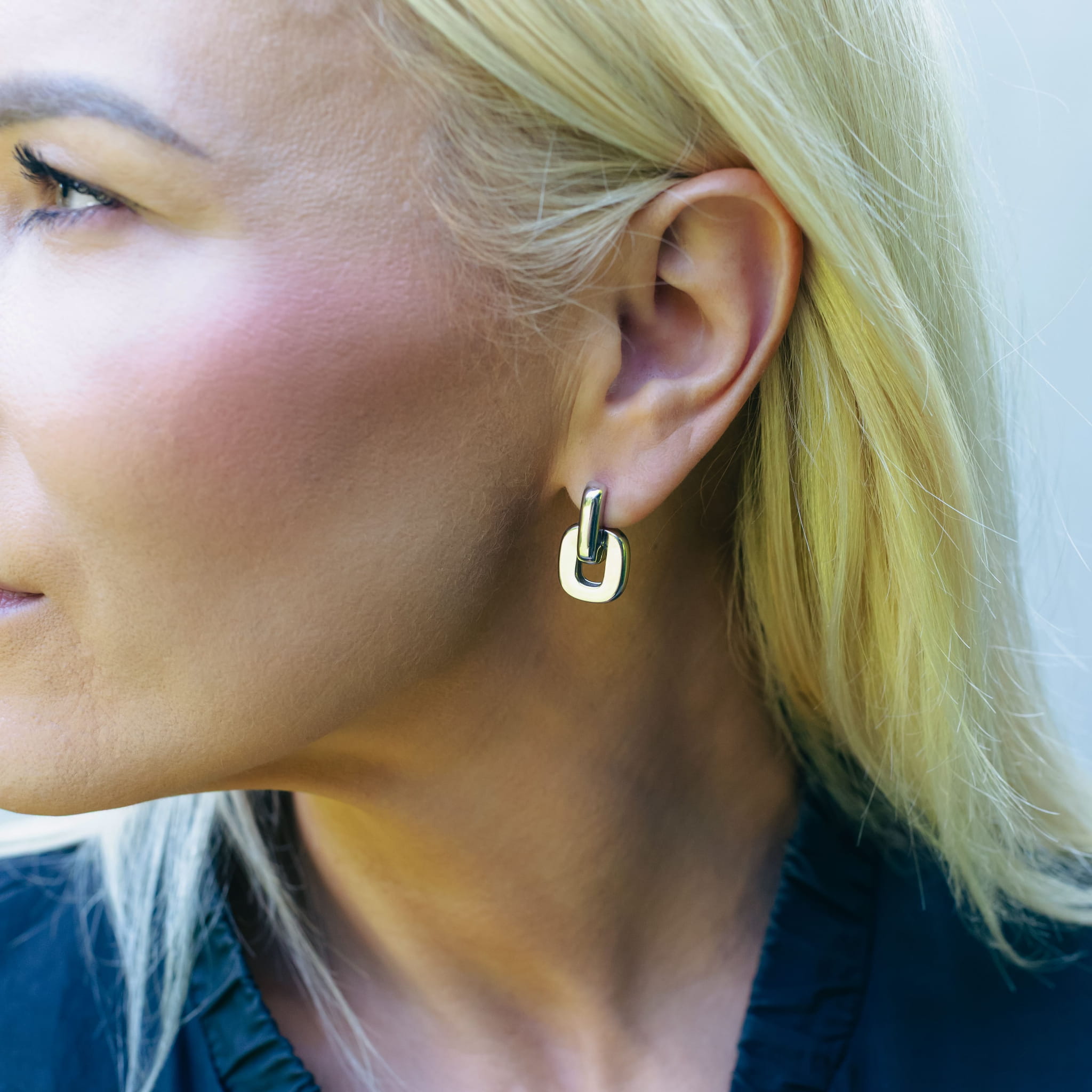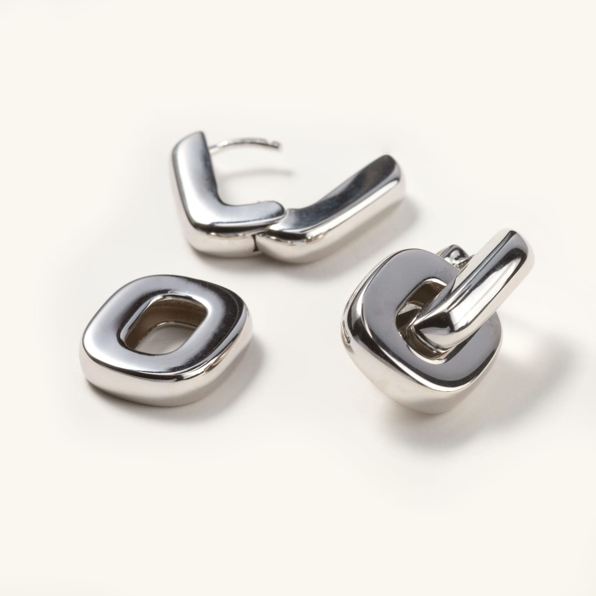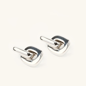 Srebrne kolczyki o geometrycznej formie i nowoczesnym designie inspirowanym kształtem ogniwa - symbolem siły, połączenia i niezależności. Są wyraziste, ale nie krzykliwe. Eleganckie w nowoczesnym designerskim stylu.