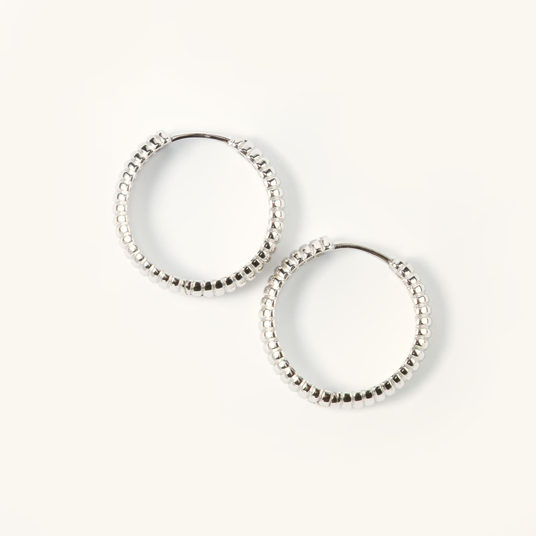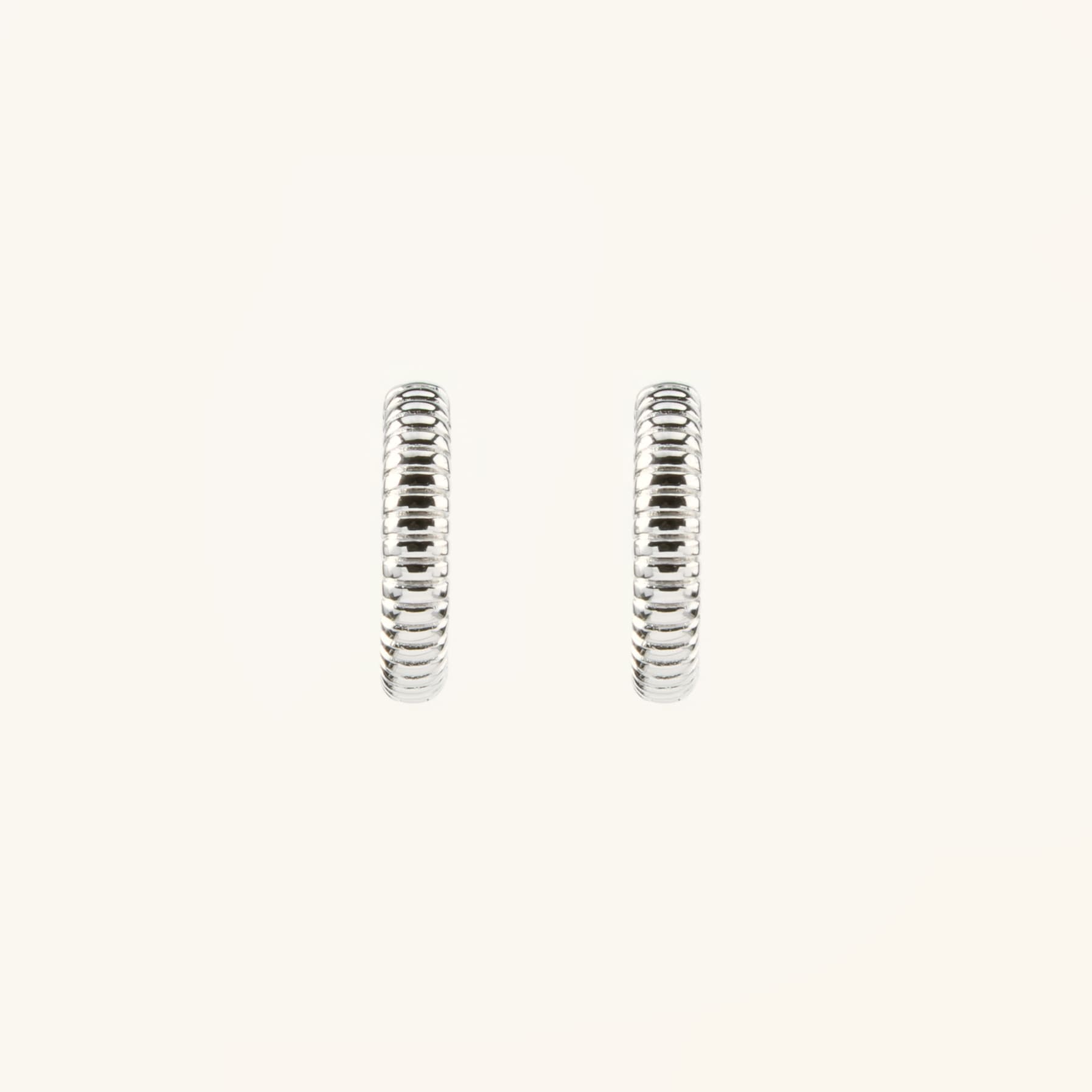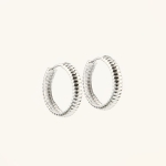 Kolczyki typu koła z charakterystyczną, karbowaną strukturą to biżuteria, która natychmiast przyciąga wzrok – nie przez błysk, a przez formę. Smukłe, perfekcyjnie zaokrąglone, z lekkim retro twistem. Pasują do każdej stylizacji, świetnie prezentują się także w kolejnych dziurkach w uchu, tworząc efektowną kompozycję z innymi kolczykami. Idealne na prezent.