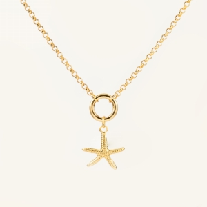 Zestaw CIRCLE&STELLA to delikatny naszyjnik z pozłacaną zawieszką w kształcie rozgwiazdy. Nawiązuje do wakacyjnych wspomnień i morskiej lekkości, idealnie wpisując się w letnie stylizacje. To biżuteria, która przyciąga subtelnym blaskiem i wyrazistym motywem - świetny wybór na prezent lub pamiątkę z wyjątkowego sezonu.
