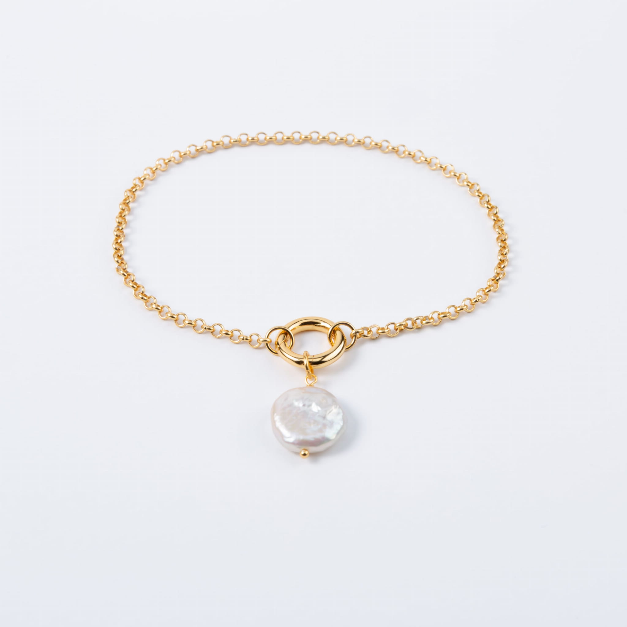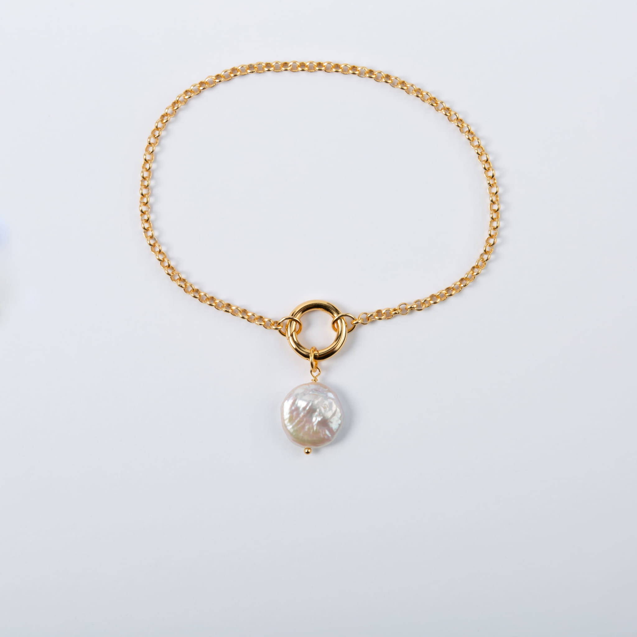 Zestaw pozłacany CIRCLE&DROP bransoletka i zawieszka z naturalną perłą barokową nowoczesna klasyka elegancki prezent