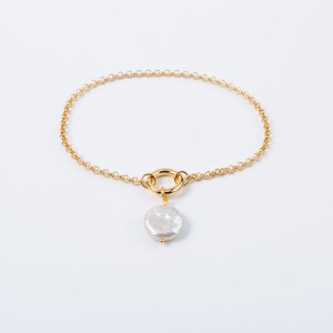 Zestaw CIRCLE&DROP łączy prostą, pozłacaną bransoletkę z zawieszką z naturalna perłą o nieregularnym kształcie. To biżuteria, która dodaje stylizacji miękkości i elegancji, nie tracąc przy tym współczesnego charakteru. Idealna propozycja na wyjątkowy prezent lub jako delikatny akcent w codziennej jak i ślubnej stylizacji.