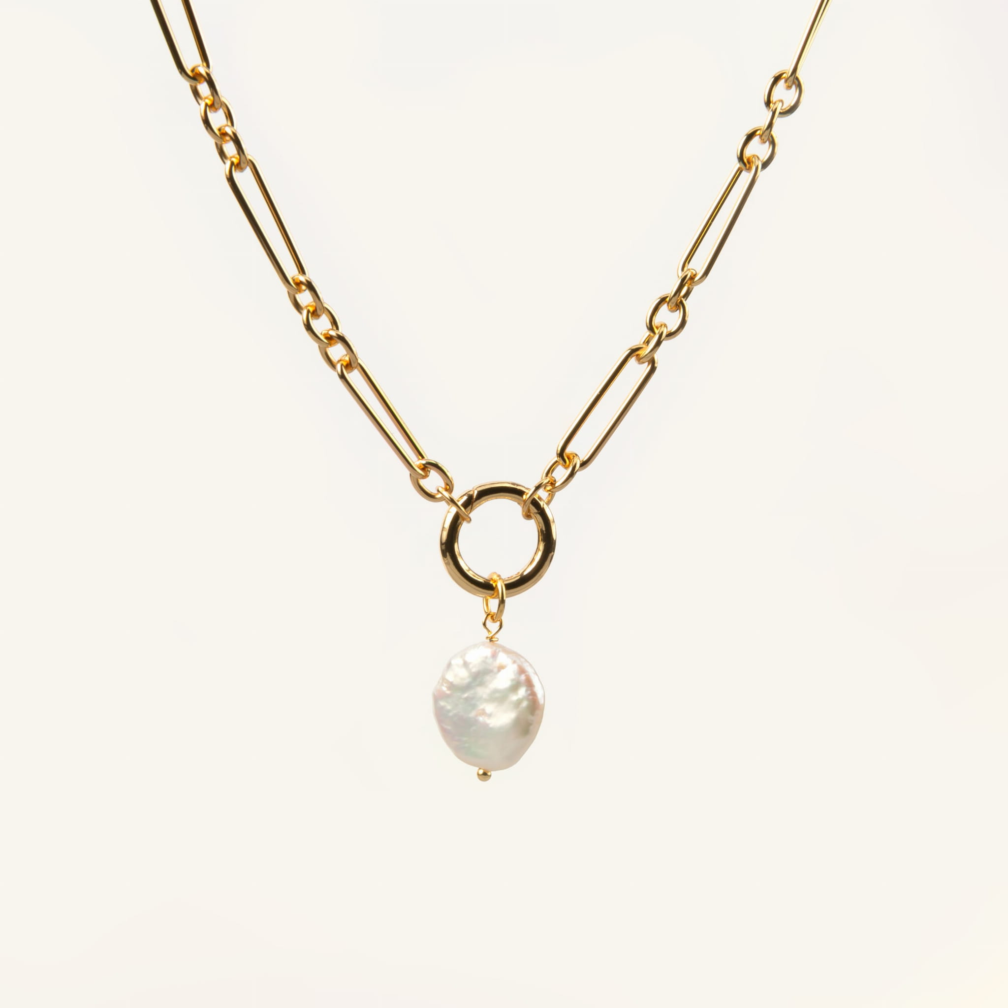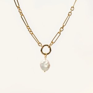 Zestaw pozłacany BIND&DROP to naszyjnik z ogniw i zawieszka z naturalną perłą barokową minimalistyczna biżuteria