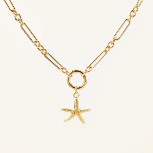 Zestaw BIND&STELLA to delikatny naszyjnik o ogniwowym splocie z zawieszką w kształcie rozgwiazdy. Nawiązuje do wakacyjnych wspomnień i morskiej lekkości, idealnie wpisując się w letnie stylizacje. To biżuteria, która przyciąga subtelnym blaskiem i wyrazistym motywem - świetny wybór na prezent lub pamiątkę z wyjątkowego sezonu.
