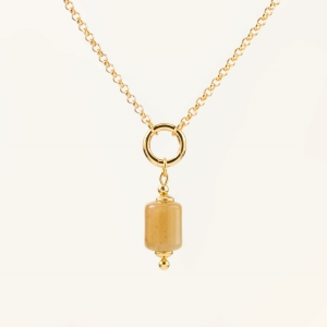 Zestaw srebrny pozłacany CIRCLE&STONE NO.3 tworzy naszyjnik i zawieszka z żółtego jadeitu kamień naturalny nowoczesna biżuteria