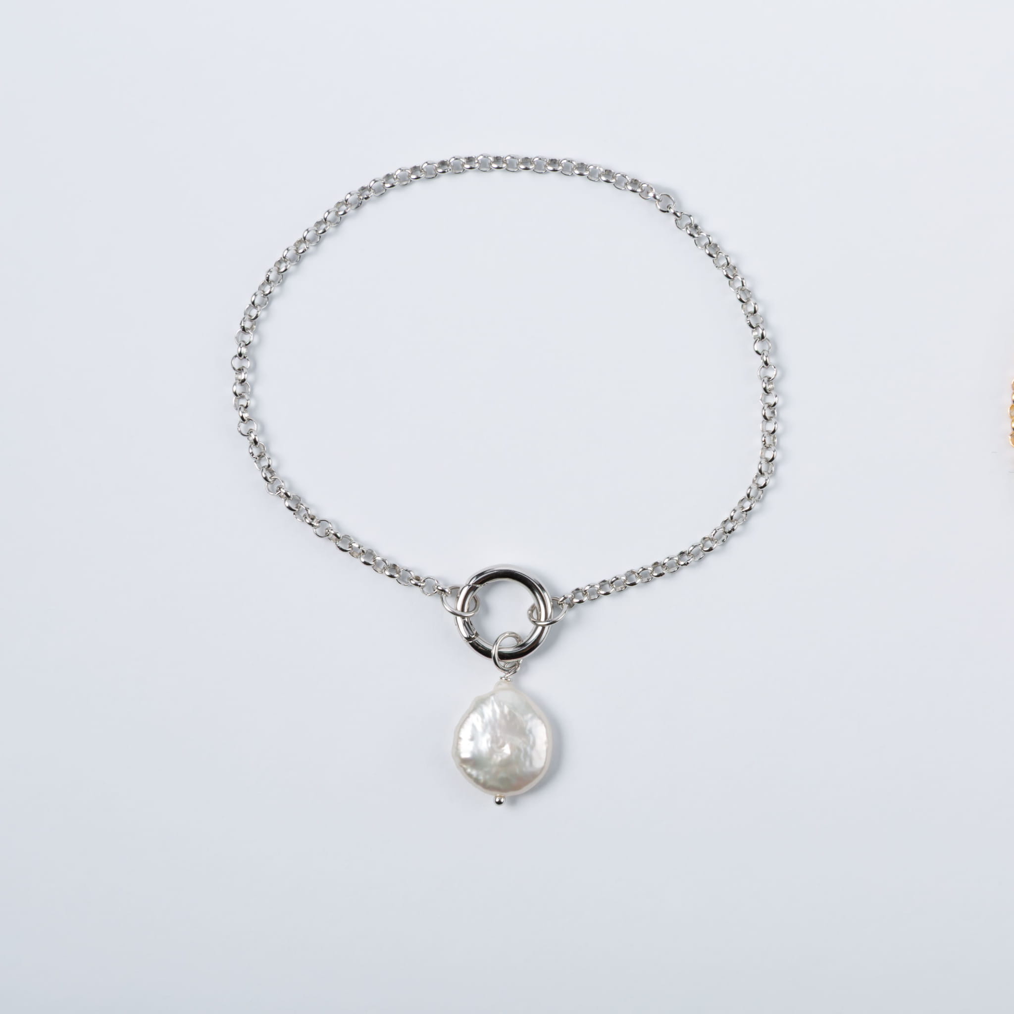 Zestaw srebrny CIRCLE&DROP to bransoletka i zawieszka z naturalną perłą barokową nowoczesna klasyka elegancki prezent