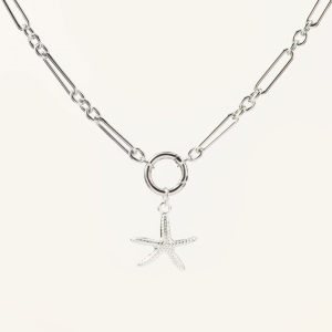 Set BIND&STELLA to srebrny naszyjnik o ogniwowym splocie i zawieszka w kształcie rozgwiazdy - subtelny symbol wakacyjnej beztroski. Ten zestaw wprowadza do stylizacji lekkość i kobiecy urok, łącząc klasyczne srebrne wykończenie z oryginalnym, morskim detalem. Doskonały zarówno na prezent, jak i jako osobisty talizman.