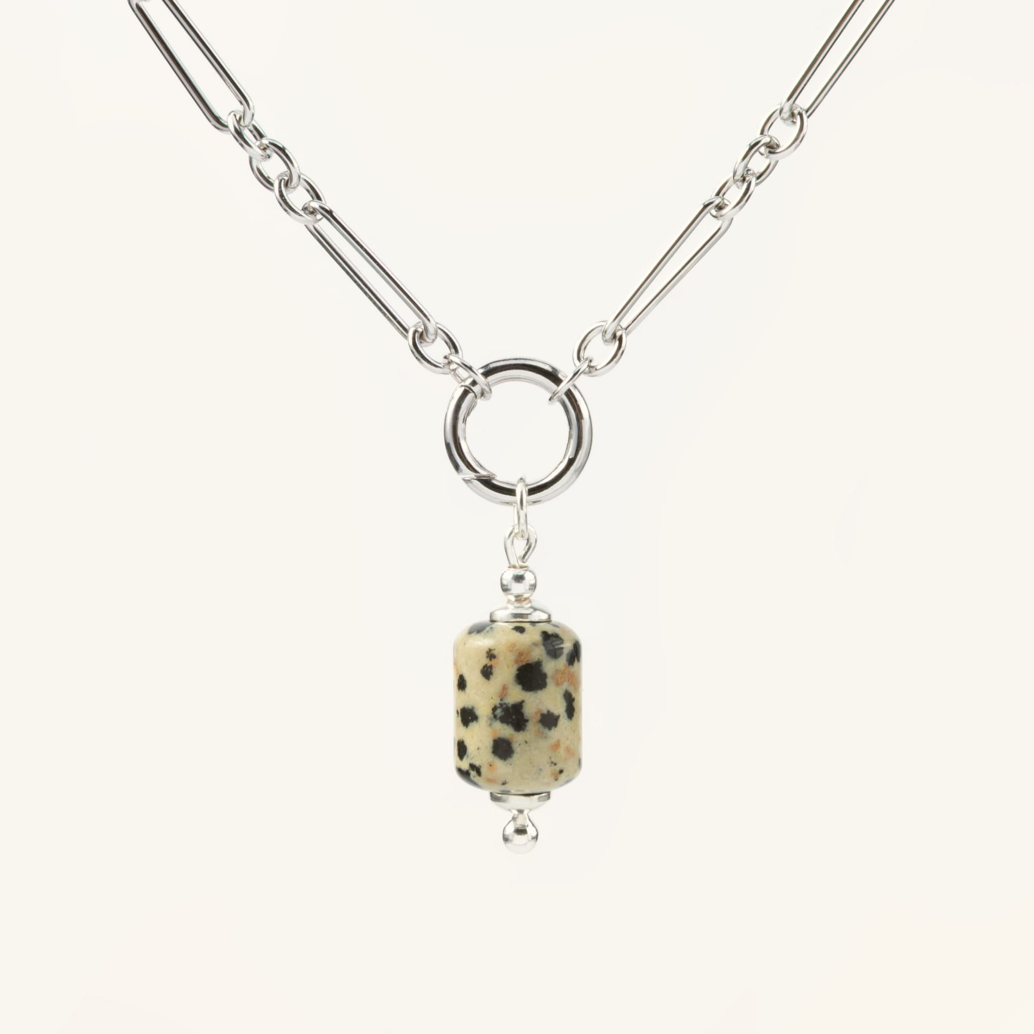 Zestaw BIND&STONE NO.5 to srebrny naszyjnik z zawieszką z kamienia jaspis dalmatyński biżuteria z kamieni naturalnych minimalistyczny naszyjnik
