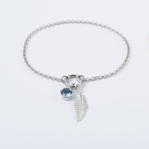 Zestaw CIRCLE NO.4 łączy w sobie bransoletkę z dwiema wyjątkowymi zawieszkami - subtelną gałązką o organicznej formie i niebieskim oczkiem o intensywnym kolorze. To elegancka, minimalistyczna biżuteria inspirowana naturą, idealna dla kobiet, które cenią wyważone detale i lubią podkreślać swój styl delikatnie, ale efektownie.