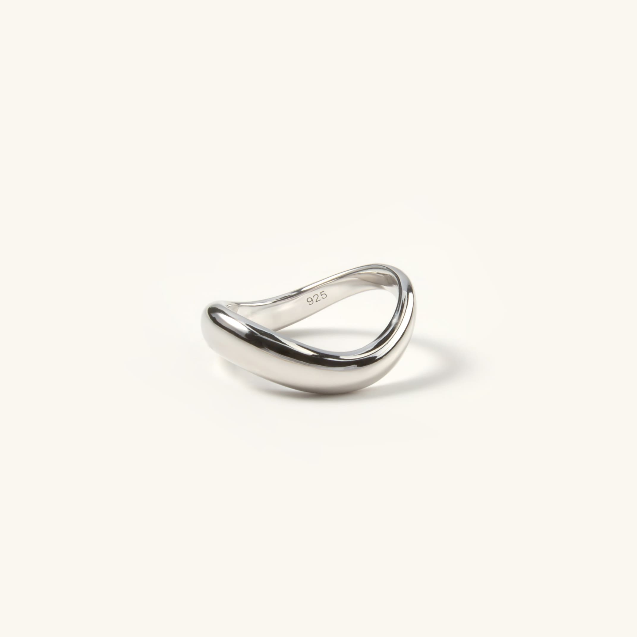 Pierścionek srebrny w kształcie fali inspirowany morzem